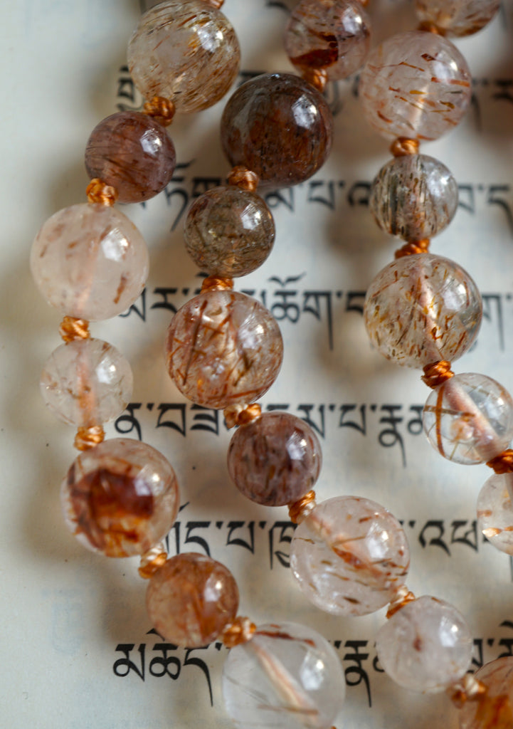 Brown Rutilated Quartz Mala